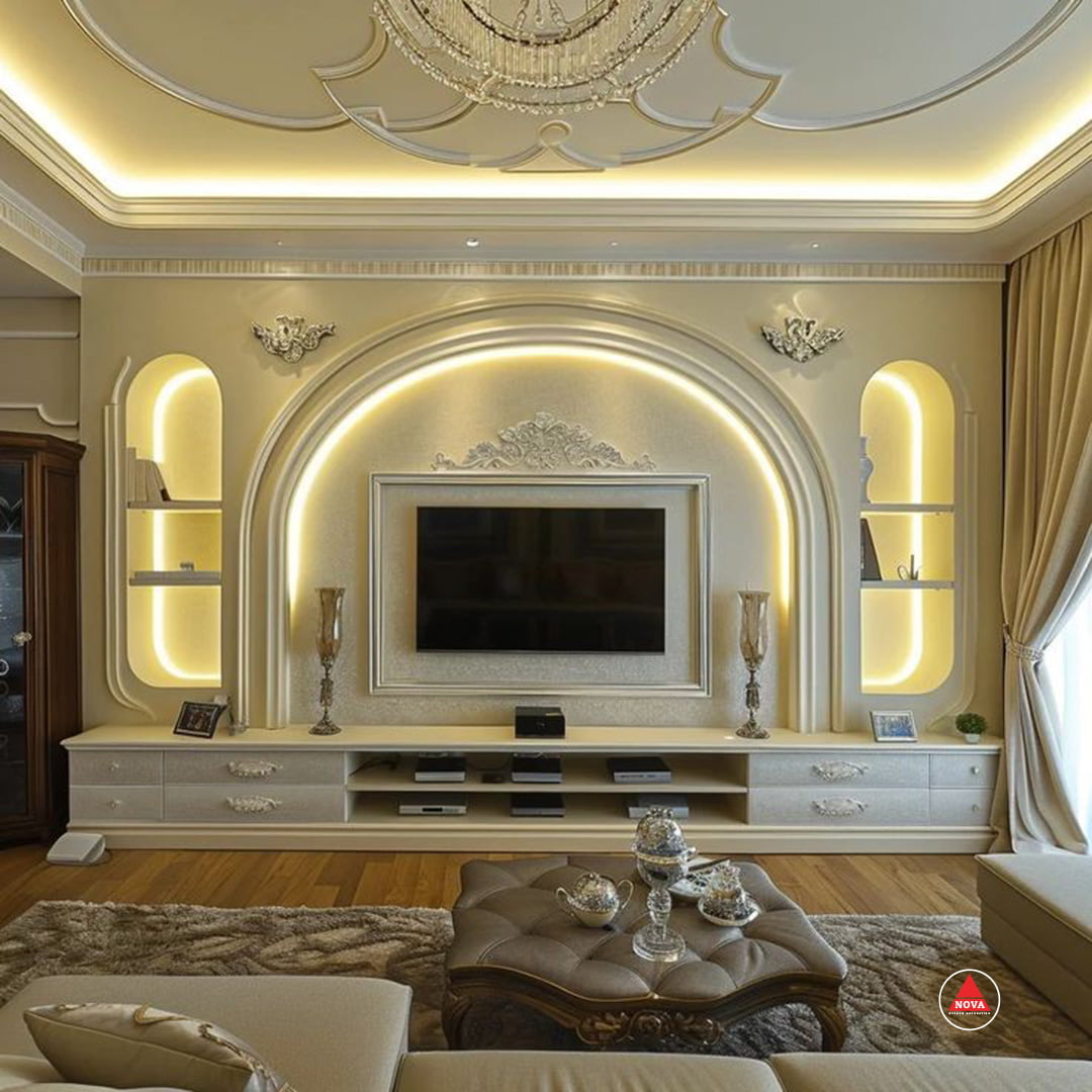 Nova Gypsum built custom TV cabinets with gypsum. These cabinets are stylish and blend perfectly with your room.